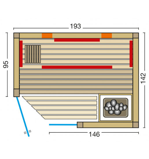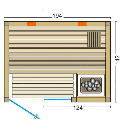 Elementsauna Optina Grundriss mit Eckeinstieg